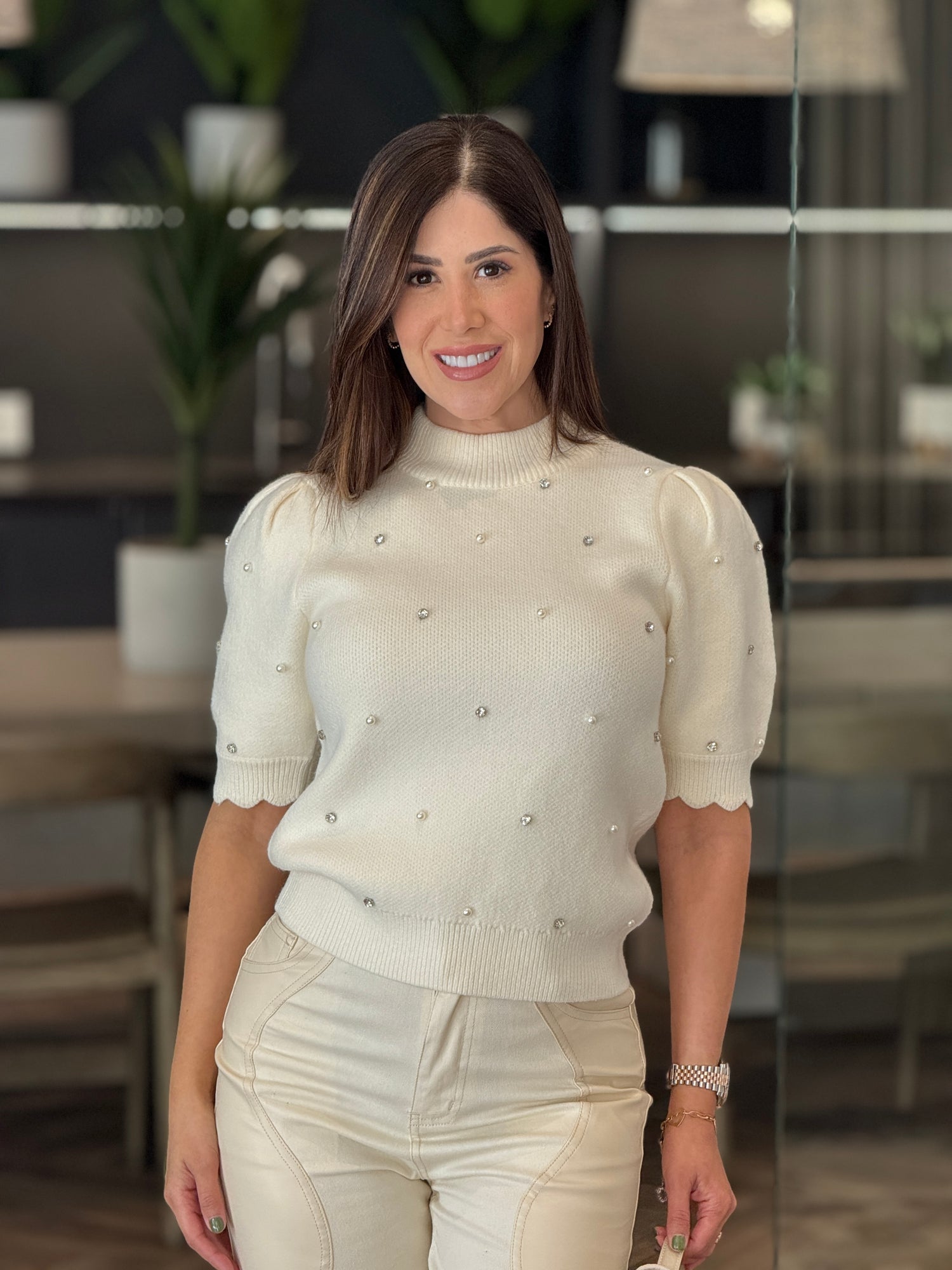Beverly Yvory & Pearls Knitted Top