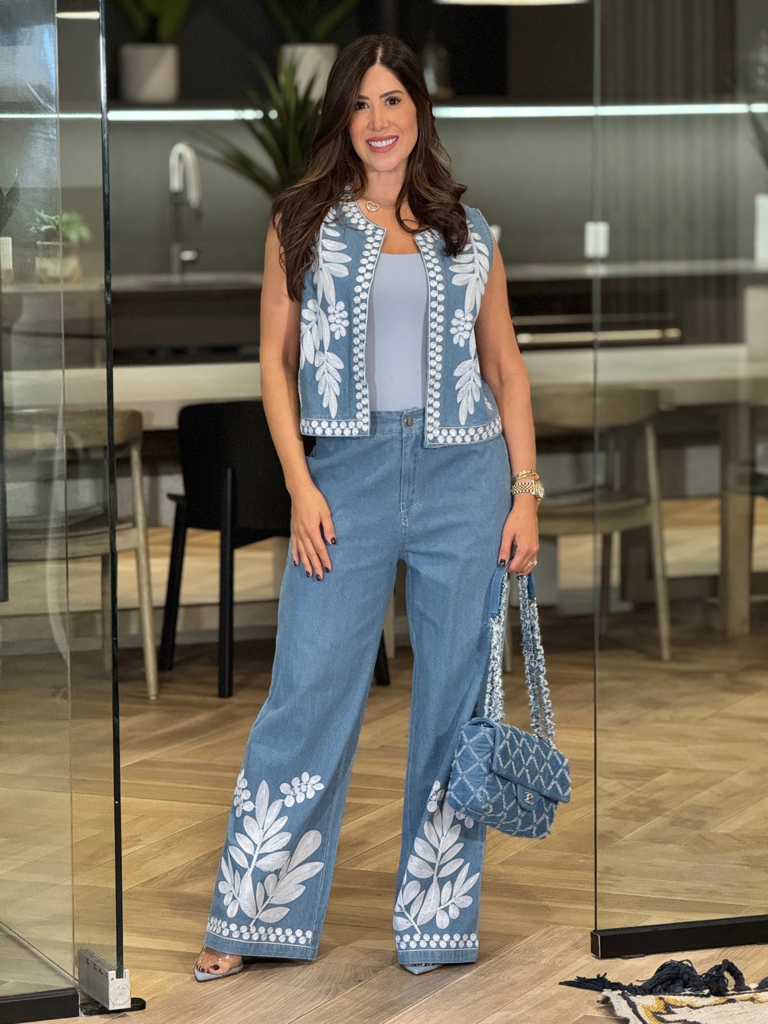 Botanical Blue Embroidery Vest Set