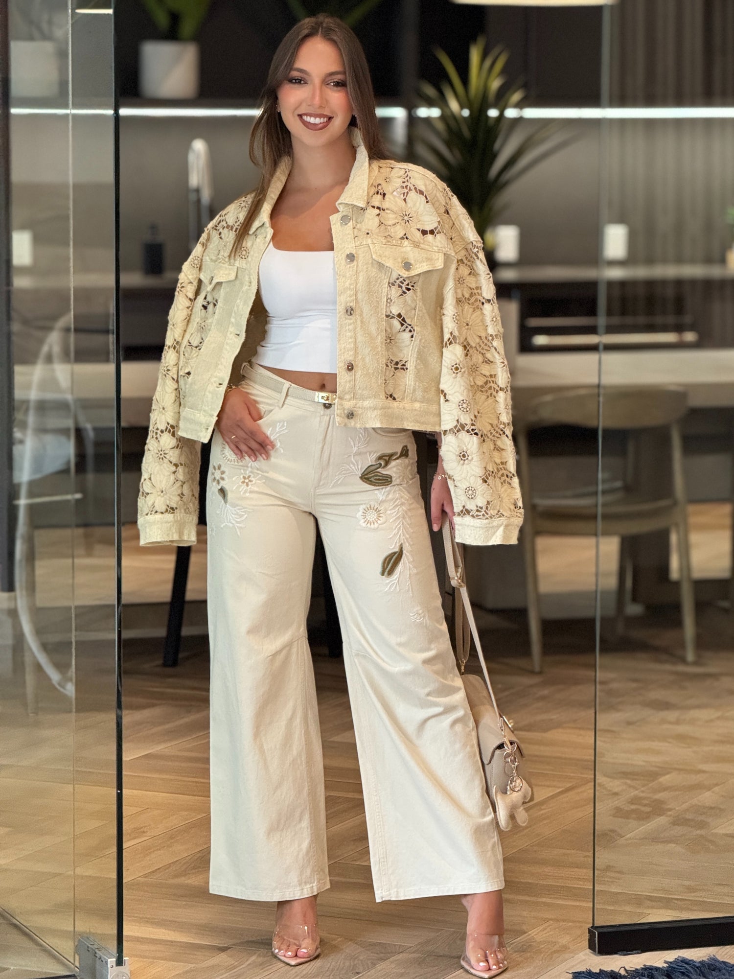 Carmen Floral Beige Embroidery Jeans