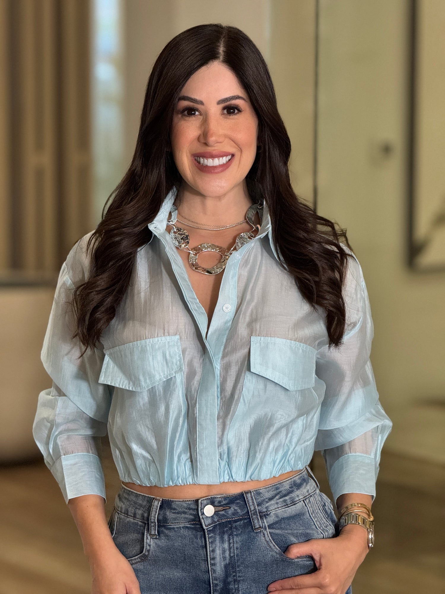 Dreamy Light Blue Sheer Blouse