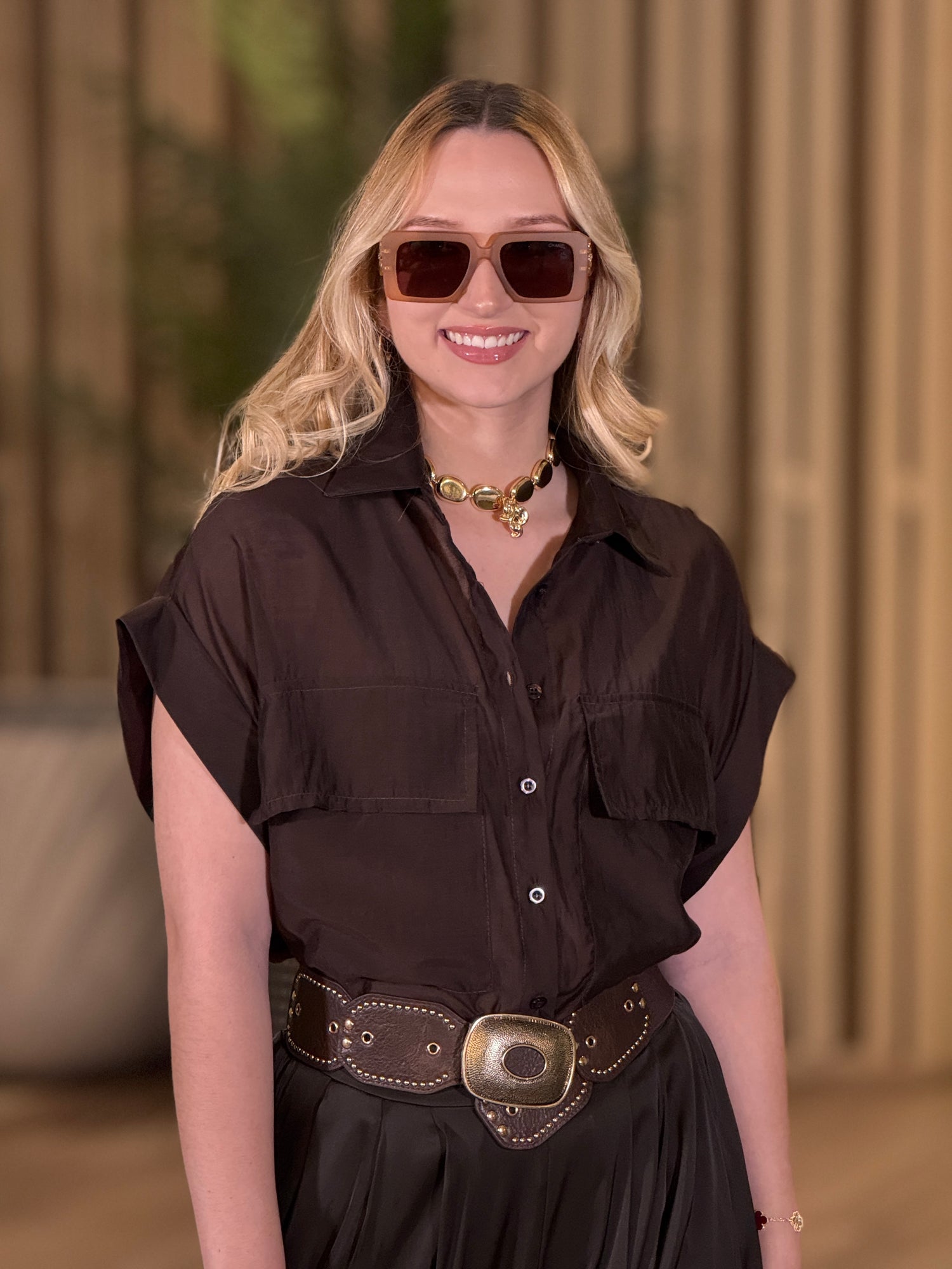 Italian Brown Pocket Chiffon Shirt