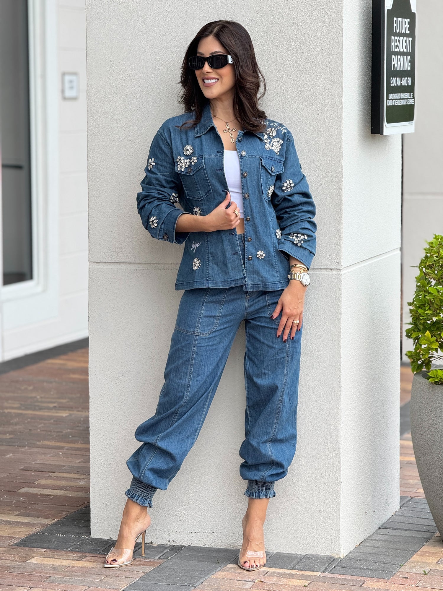 Set de camisa y pantalon, no estira. La modelo usó small.