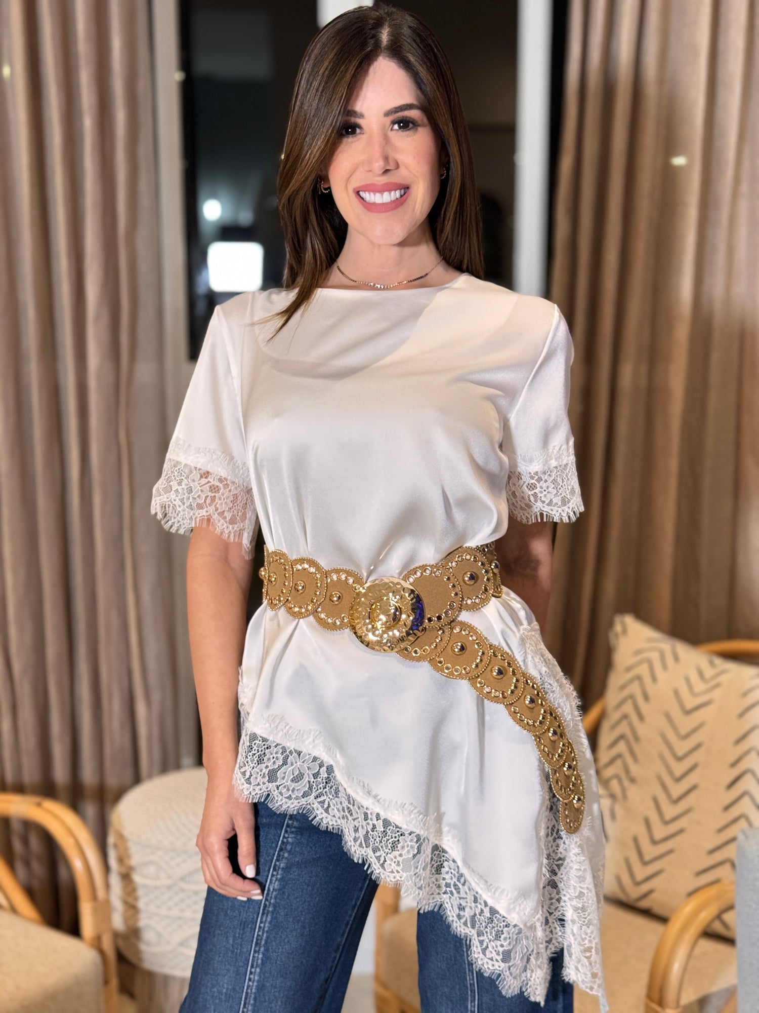 Naples White Satin Asymmetrical Lace Top