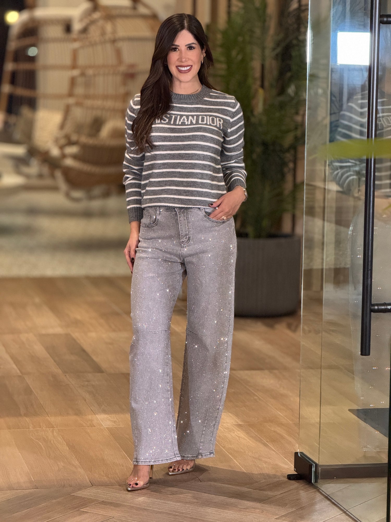 Nina Silver Denim Rhinestone Jeans