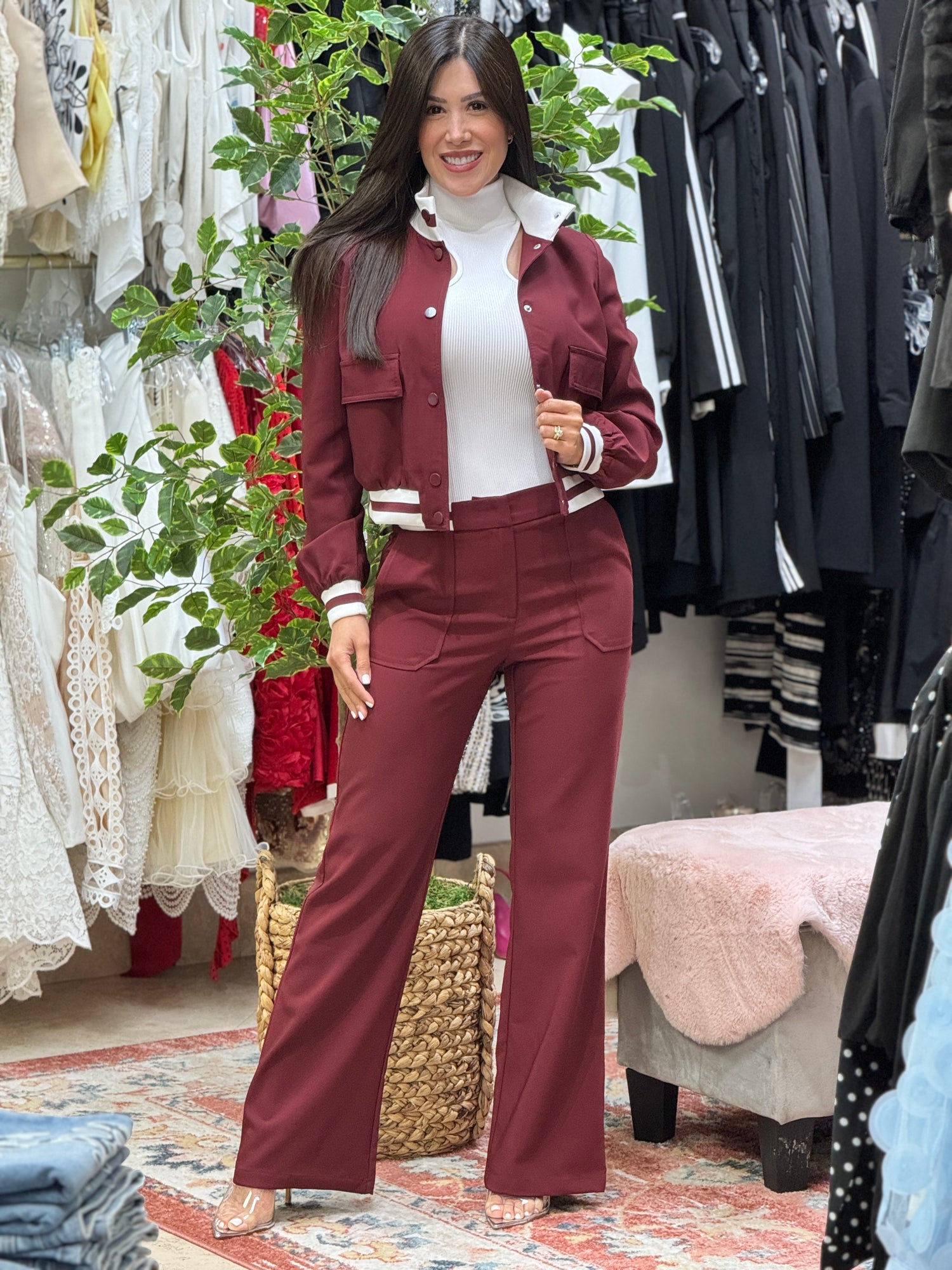 Set de chaqueta, la tela es de vestir, la modelo usó talla small